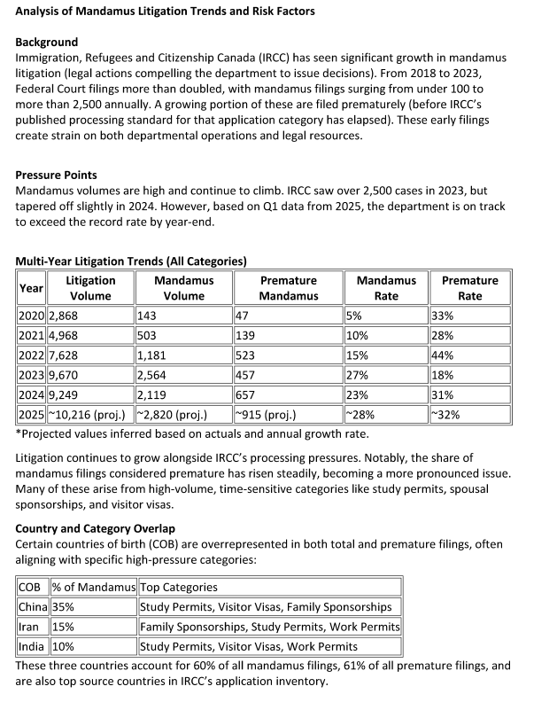 The following is a report by IRCC’s Beijing visa office describing the huge increase in the number of mandamus applications that they are receiving.