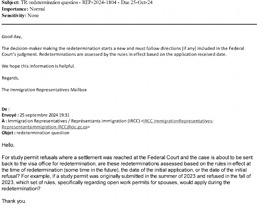 There are some key takeaways, including that it is not always the base that the Department of Justice contacts litigation management to discuss settlement. If counsel believes that IRCC should settle it may be worth contacting the DOJ to inform them of why settlement may be warranted.